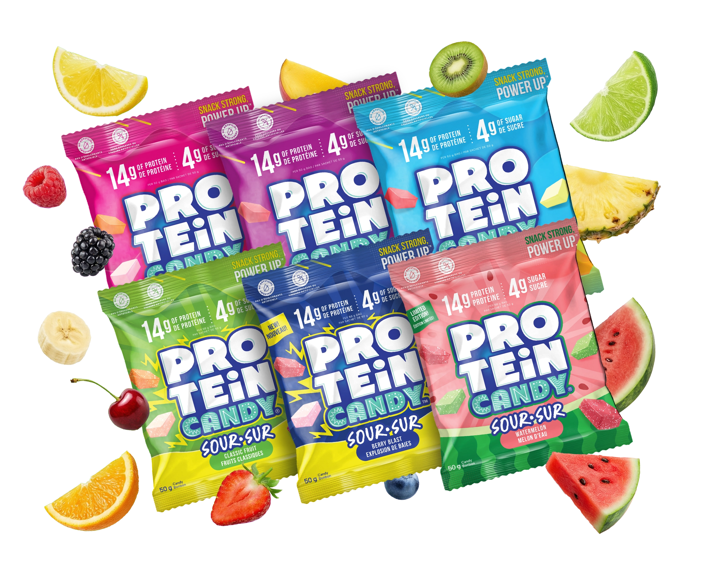 Protein Candy offers delicious candy in multiple flavours with the added benefit of 14g of protein and only 4g of sugar per serving. It’s not a gummy, it’s not a chew, it’s Protein Candy!